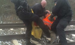 Nach rund 30 Minuten räumten die Bundespolizisten die Gleise und kesselten die Aktivist_Innen daneben ein. Nach einer Personalienfeststellung wurden sie wieder in die Freiheit entlassen.
