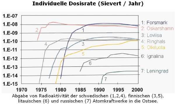 Unter den Atomkraftwerken entlang der Ostseeküste haben laut Untersuchungen der Europäischen Gemeinschaft und Experten des Riso Nuclear Research Laboratory (Dänemark) zwischen 1970 und 2000 die Reaktoren in Schweden die größten Freisetzungswerte an Radioaktivität in die Umwelt. Die Reaktoren in Forsmark und Oskarshamn stehen seit 20 Jahren an der Spitze dieser Liste – um den Faktor 100.000 größer als etwa das russische AKW Leningrad bei Sosnovy Bor.