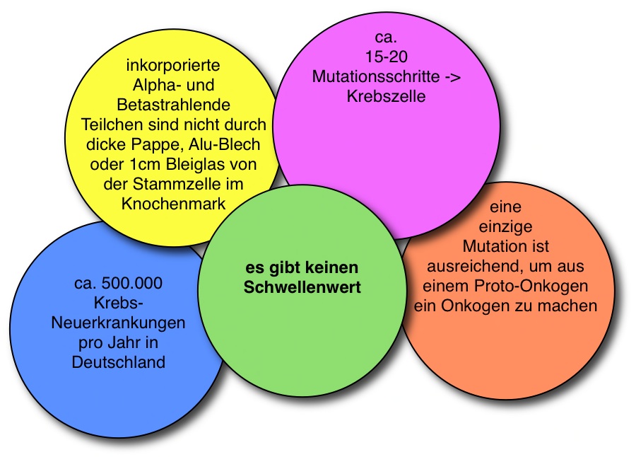 Mit der Bestrahlung von Stammzellen durch inkorporiertes Plutonium, aber auch durch jedes andere radioaktive Nuklid im Knochenmark können cancer stem cells entstehen und damit Leukämie, aber auch jede Art von Karzinomen und Sarkomen.