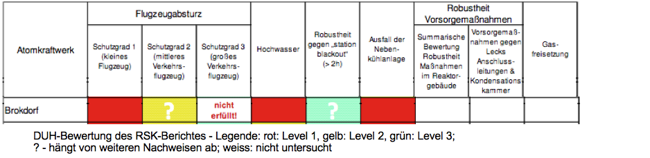 Die Reaktorsicherheitskommission hat im April 2011 auch die „neueren Meiler“ untersucht und eklatante Misstände festgestellt. So würde besispielsweise das AKW Brokdorf den Absturz eines Flugzeugs nicht standhalten. Ein ausreichender Schutz gegenüber eines extremen Hochwassers der Elbe ist auch nicht gegeben.
