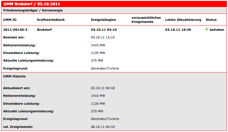 - Doch nach der Wiederinbetriebnahme am Sonntag (02.10.) kam es um 4:10 Uhr in der folgenden Nacht zu Problemen mit „Generator/Turbine“, so Betreiber E.ON in einer Urgent Market Messages (UMM). Aktuell ist der Reaktor laut E.ON vom Netz. Eine offizielle Stellungnahme zu einem Vorfall gibt es bislang nicht.