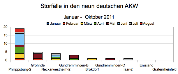 11. August 2011 – Nach der Abschaltung des Atomkraftwerk Brokdorf am vergangenen Wochenende macht ein zweites der letzten neun Meiler in Deutschland negative Schlagzeilen: Das AKW Philippsburg-2 musste heute gleich zwei Störfälle melden und befindet sich seit Jahresbeginn mit Abstand auf Rang 1 der Pannenmeiler. Atomkraftgegner fordern, auch die letzten Reaktoren endlich stillzulegen.