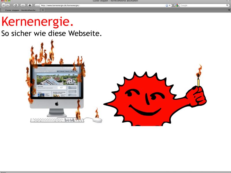 - Die Propagandaseite der Atommafia, www.kernenergie.de wurde offenbar gehackt und verunstaltet.