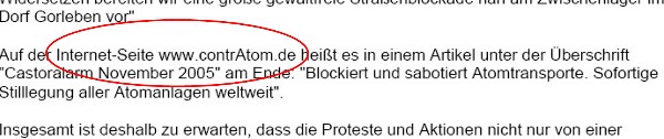 - Aktuelle Informationen zum Castortransport 2011 befinden sich in der Rubrik Castor2011