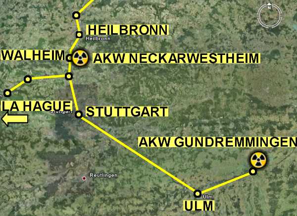 Wir dokumentieren die Fahrtrouten der vergangenen Transporte, die zum größten Teil aus Frankreich/La Hague kamen; 1995-97 aber auch aus deutschen Atomkraftwerken.