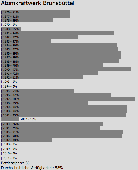 Seitdem stand der Meiler still. Bis zum Super-GAU von Fukushima kündigte der Betreiber immer wieder ein Wiederanfahren an, mit der Entscheidung zur Stilllegung der acht ältesten Reaktoren war dann aber auch Brunsbüttel endgültig Geschichte. Glücklicherweise – denn die Siedewasserreaktoren der Baureihe 69 gehören zu den unsichersten.
