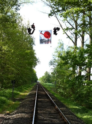 „Es gibt keinen Atomausstieg, wenn die Atomanlagen in Gronau und Lingen unbefristet weiter laufen.“, erklärt eine Aktivistin im Seil, „Die Anlagen produzieren für den Export von Brennstäben. Es ist genauso gefährlich, wenn ein Atomkraftwerk auf der anderen Seite der Grenze in die Luft geht. Radioaktivität kennt keine Grenzen – unser Widerstand auch nicht!“.