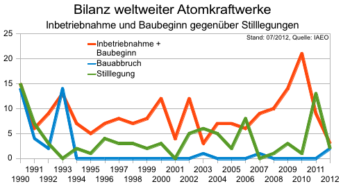 Bilanz AKW Inbetriebnahmen, Stilllegung und Bauabbruch; Stand: 07/2012