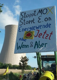 An einem Aktionstag gegen angekündigte Plutonium-Transporte zum Atomkraftwerk Grohnde nahmen gestern hunderte Menschen teil. Mit einem Korso zogen sie zum AKW und forderten: „Stoppt MOX, Stoppt E.ON!“