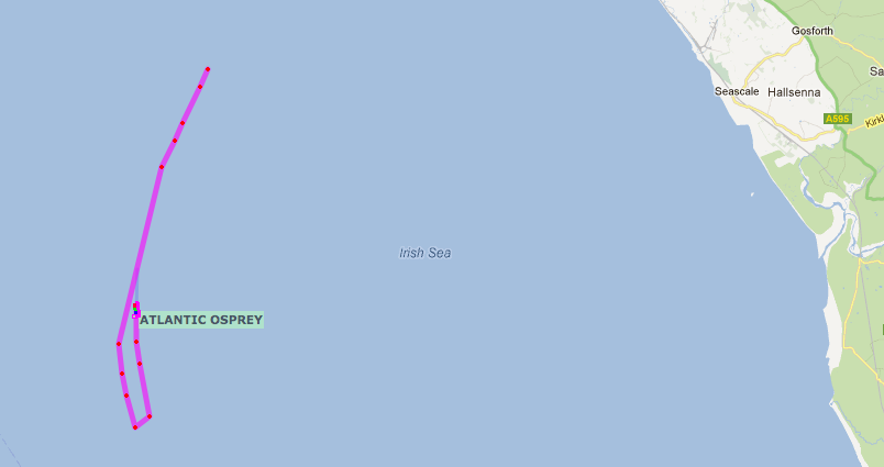 Das britische Transportschiff „Atlantic Osprey“ hat heute Vormittag den Hafen von Workington wenige Meilen nördlich der Wiederaufarbeitungsanlage Sellafield mit südlichem Kurs verlassen. Atomkraftgegner erwarten für die 2. Septemberhäfte einen Transport von acht plutoniumhaltigen Mischoxid-Brennelementen. Möglicherweise hat die Atlantic Osprey diese Fracht an Bord. Update: Um 18.00 Uhr änderte das Schiff abermal den Kurs und befindet sich nun im Heimathafen Workington.