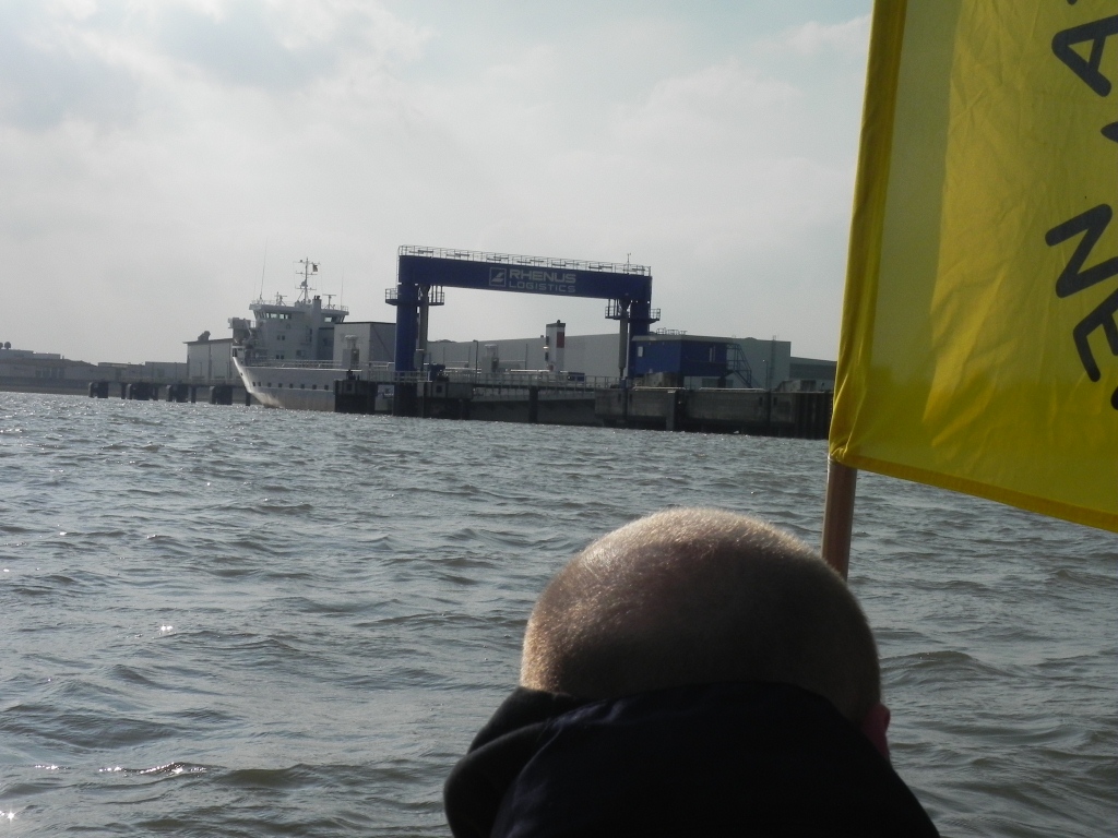 „Inspektion“ des Anlegers im Hafen von Nordenham am Sonntag, 16.09., über den die hochbrisante Fracht entladen werden soll.