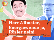 Energiewende ist kein Mode-Slogan, den man sich wie einen Anstecker ans Revers heftet, wenn Reaktorunfälle uns die Gefährlichkeit von Atomkraftwerken in Erinnerung rufen und den man wieder abnimmt, wenn Industrie, Stromkonzerne und Netzbetreiber murren! Machen Sie Ihren Job, Herr Altmaier!