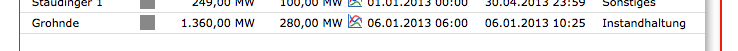 Es handelt sich offenbar um eine geplante Leistungsreduktion im AKW Grohnde, denn bereits heute wird auf der Webseite eon-schafft-transparenz.de davon berichtet, dass am 06.01.2013 zwischen 6.00 und 10.25 Uhr die Leistung des 1.360 Megawatt-Reaktors um 280 MW gedrosselt wird. Als Ursache nennt EON „Instandhaltung“.