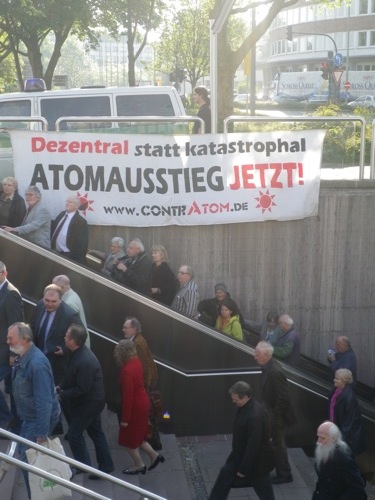 4. Mai 2012 – Anstatt in Deutschland intensiv in den Ausbau erneuerbarer Energien zu investieren, plant Deutschlands größter Energiekonzern EON, seine Geschäfte im Ausland auszuweiten. Dies gab das Unternehmen auf seiner Aktionärsversammlung in Essen bekannt. Das Aktionsbündnis „Atomausstieg selber machen“ ruft EON-Kunden daher auf, dem Großkonzern zu kündigen.