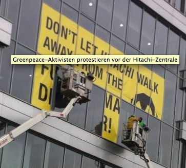 Duisburg: Greenpeace protestiert bei Hitachi für verschärftes Atomrecht