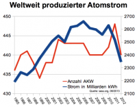 Weltweit ging die Stromerzeugung der Atommeiler im Jahr 2012 um rund sieben Prozent zurück und erreichte mit 2.346 Milliarden Kilowattstunden den niedrigsten Wert seit 14 Jahren.