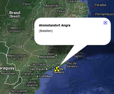 Derzeit befinden sich in Brasilien am Standort Angra, unweit von Rio de Janeiro, zwei Reaktoren in Betrieb und einer – mit deutscher Technik von Siemens – seit 1984 in Bau. Gegen die Errichtung von Angra-3 gab es zuletzt Mitte 2012 auch in Deutschland Proteste, weil die Bundesregierung das Projekt durch Hermeskredite absichern will. Die Atomenergie hat in Brasilien einen Anteil von nur drei Prozent an der Gesamtstromerzeugung.