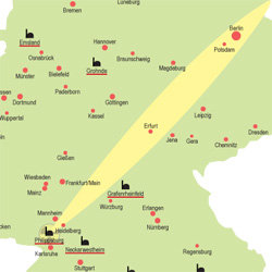 - Eine Grafik zu der potentiellen Ausbreitung des radioaktiven Fallouts und der zu evakuierenden Gebiete am Beispiel des Atomkraftwerks Philippsburg 1 finden Sie unter hier.