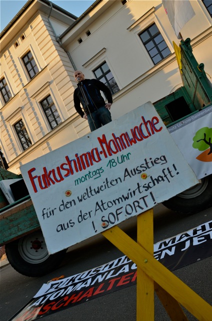 Etwa 3.300 Atomkraftgegner zogen vom Bahnhof Kirchheim zum Atomkraftwerk Neckarwestheim. Motto: „Fukushima außer Kontrolle!“. Mehrere Tausende DemonstrantInnen waren auf 7 Rheinbrücken für die Stilllegung des französischen AKW Fessenheim. 800 protestierten in Jülich. Am Montag nahmen zehntausende Menschen an Mahnwachen in ganz Deutschland teil.