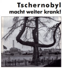Auch 28 Jahre nach dem Super-GAU in Tschernobyl zeigt sich ein beängstigendes Bild: Die Menschen in den bis heute verstrahlten Gebieten leiden an vermehrten Krebskrankheiten und strahlenbedingten chronischen Erkrankungen. Die psychosozialen Belastungen der Bevölkerung sind aufgrund der Einwirkungen der nuklearen Katastrophe bis heute hoch. Tschernobyl darf nicht in Vergessenheit geraten: Atomkraftwerke weltweit abschalten!