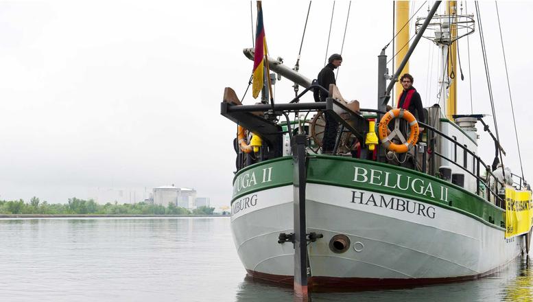 Mit ihrem Aktionsschiff „Beluga II“ klärt Greenpeace zur Zeit die Menschen entlang von Rhein und Mosel über das Risiko der alternden Atomkraftwerke auf. Erste Station waren die ältesten französischen Meiler von Fessenheim.