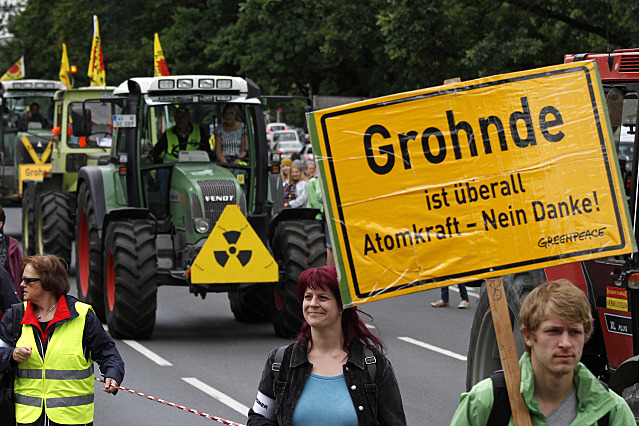 15. Juni 2014 – 500 – 600 Menschen und 20 Trecker haben gestern in Hannover die sofortige Stilllegung des AKW Grohnde gefordert. Mit der Demonstration und einer Unterschriftensammlung wollten die KritikerInnen nach den neuerlichen Defekten im AKW Grohnde Druck auf die niedersächsische Atomaufsicht machen, dass der seit Jahrzehnten umstrittene Reaktor in der nächsten Woche nicht wieder ans Netz geht.