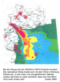 Die jetzt bekannt gewordene Simulation eines Super-GAUs ist besonders brisant, weil erst in diesem Jahr die Vorsorgebereiche für Atomunfälle drastisch ausgeweitet wurden. So müsste ein Umkreis von 20 km rund um Atomkraftwerke innerhalb von 24 Stunden evakuiert werden, in einem Umkreis von 100 km müsste die Bevölkerung in den Räumen bleiben und vorsorglich Jodtabletten einnehmen.