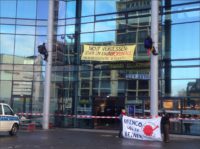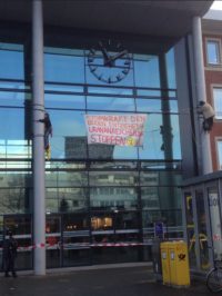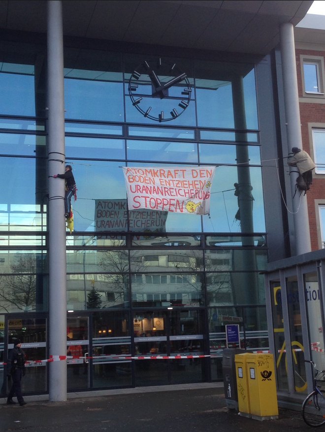 Kletteraktion am Münsteraner Hauptbahnhof – Urantransporte stoppen