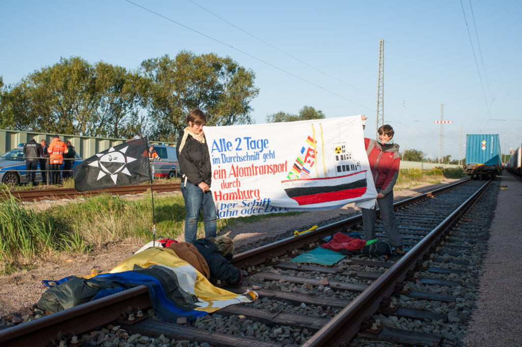 Wir machen Aktionen, die wir richtig und wichtig finden. So haben wir 2014 gemeinsam mitten im Hamburger Hafen einen Urantransport mit einer Ankettaktion angehalten. Das auf dem Zug geladene Uran wurde in Namibia in offenen Tagebauen mit viel Strahlenbelastung für alles drumherum und in Kazachstan durch Fracking und Chemikalien im Boden abgebaut. Wir haben damit bewusst und gezielt in die laufenden Prozesse eingegriffen – mit einer Intervention, weil sonst alles weitergeht wie bisher. Das Resultat: Viel Berichterstattung und Diskussion in den Medien. Und, über einen längeren Zeitraum betrachtet, Transporte, die weniger geworden sind oder andere Routen nehmen. Widerstand braucht einen langen Atem.