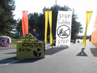 Zwei DemonstrantInnen haben sich heute Mittag an den Toren des Endlagerbergwerks angekettet. Mit mehr als 100 Mitgliedern der Aktionsgruppen widersetzen, contrAtom, X-tausendmal quer und der KURVE Wustrow war es heute um 12 Uhr zum Schichtwechsel von ca. 100 Angestellten gelungen, die Zufahrten zu blockieren. Nach zwei Stunden beendeten die AktivistInnen ihre Blockade.